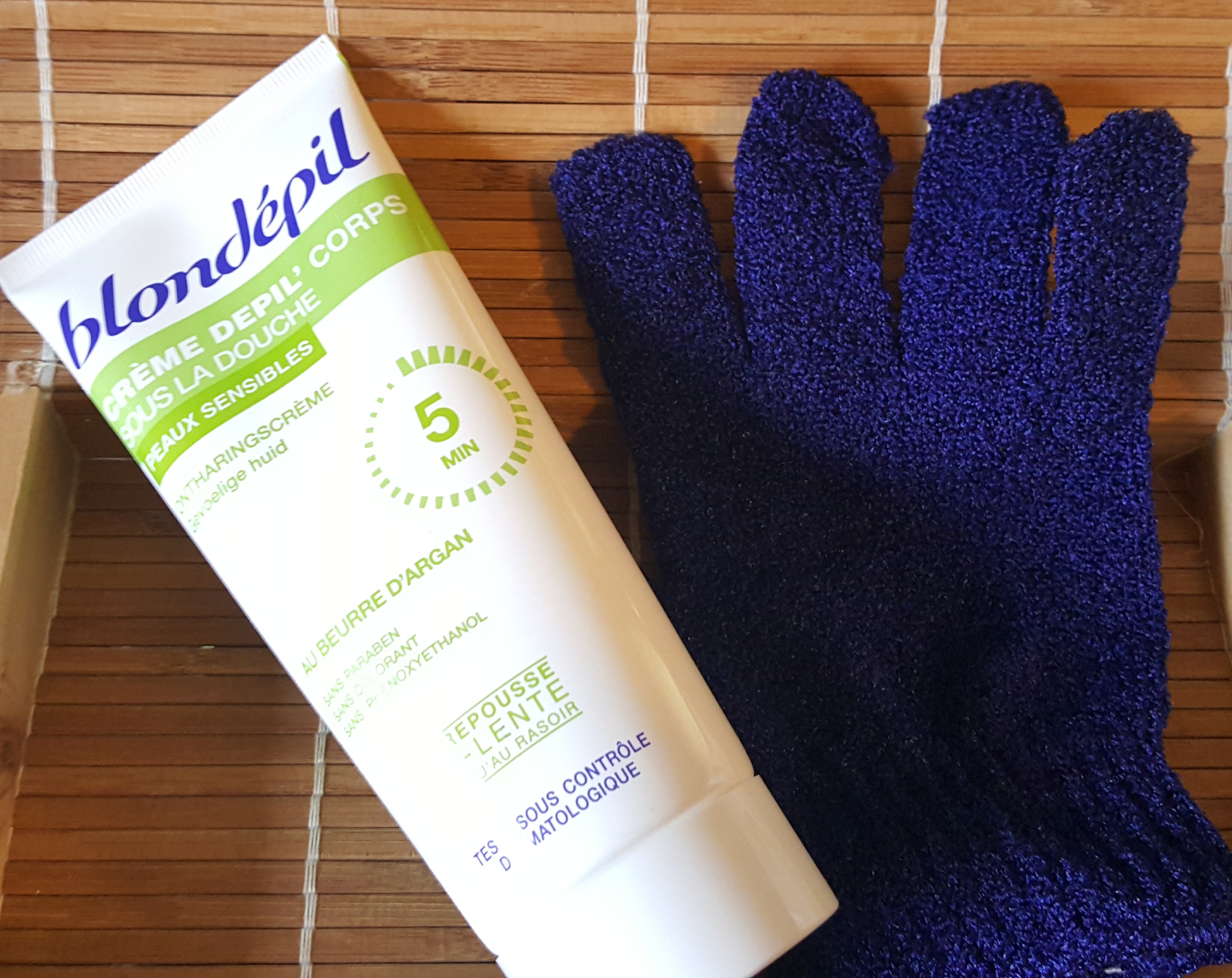 Comme pour la crème visage, je passe un coup de gant avant l’épilation pour exfolier les peaux mortes en douceur. J’applique ensuite en couche épaisse et uniforme la crème et je laisse poser 5 minutes sans dépasser le temps recommandé. Je fais ensuite des massages circulaires avec le gant pour éliminer tous les poils. Aucun poil ne lui résiste comme pour le visage, la peau est douce, hydratée et soyeuse …Les jours suivants, sous la douche, j’utilise le gant pour son action gommante et limiter les poils incarnés.