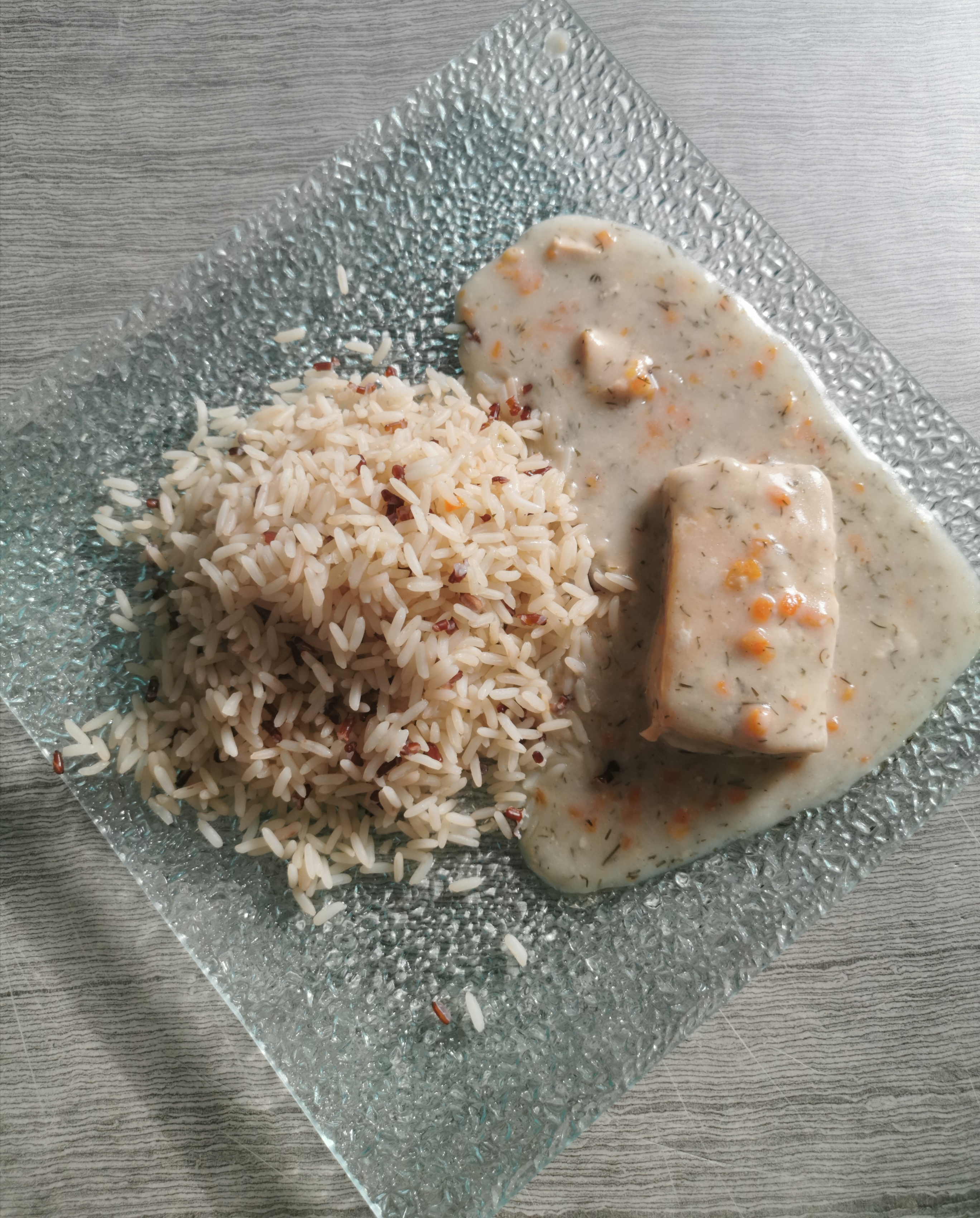 Le pavé de saumon sauce aneth et son riz :