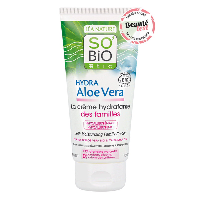 Idéale pour les peaux sensibles et réactives. A base de pur jus d’aloe vera et de calendula bio, des ingrédients qui ont fait leurs preuves pour le soin des peaux les plus fragiles. Multi-usage, elle s’applique aussi bien sur le visage, le corps ou les mains. Bio, hypoallergénique et sans parfum de synthèse, elle a vraiment tout pour plaire. Sa texture est un régal et elle pénètre rapidement. Son prix : 10.90€ les 100 ml.